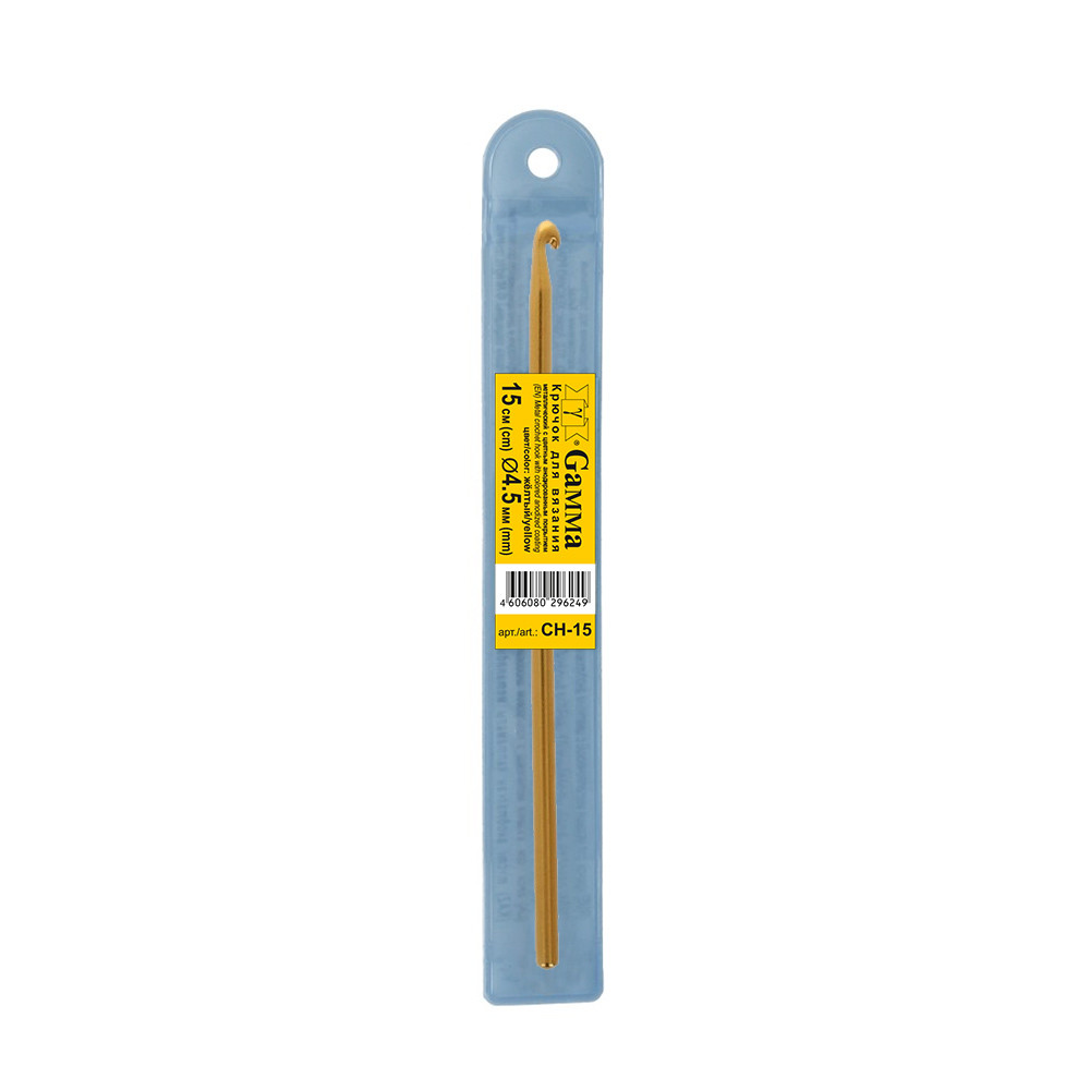 Для вязания " Gamma" CH- 15 крючок цв. алюминий d 4. 5 мм 15 см в чехле синий